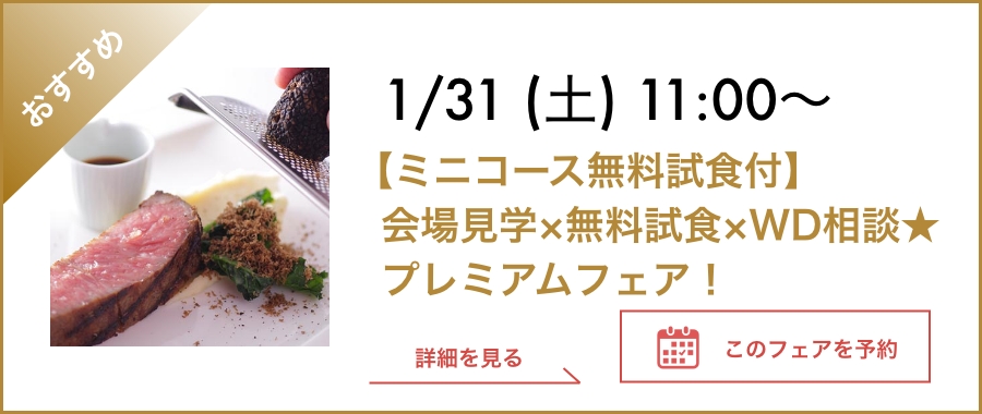 【ミニコース無料試食付】会場見学×無料試食×オリジナルWD相談★プレミアムフェア!の